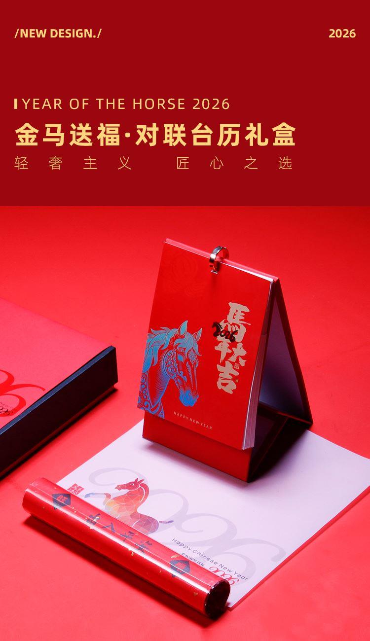 青锦2026【金马送福】马到成功台历对联门神文创礼盒