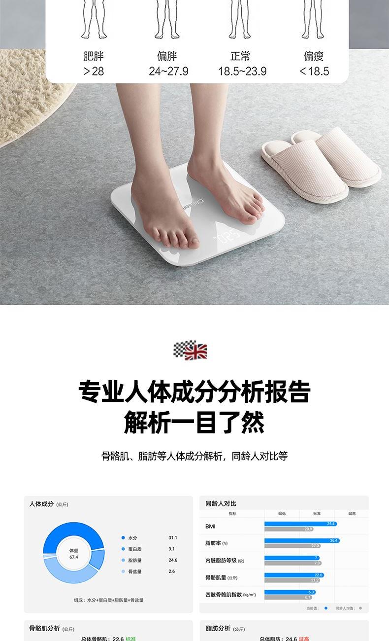 1、蓝牙链接专属APP(安晶生活),智能识别体型