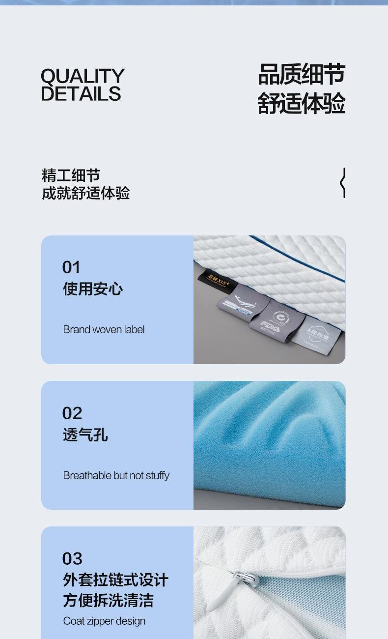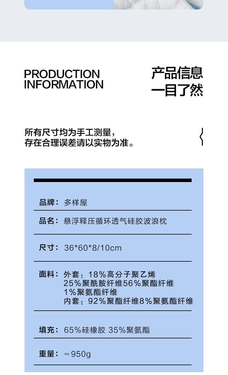 材质:外套:18%⾼分⼦聚⼄烯 25%聚酰胺纤维56%聚酯纤维 1%聚氨酯纤维 内套:92%聚酯纤维8%聚氨酯纤维 填充物:65%硅橡胶 35%聚氨酯 重量:950g 规格尺寸:36cm×60cm×8/10cm 包装:内部:透明袋包+外部:手提牛津布包