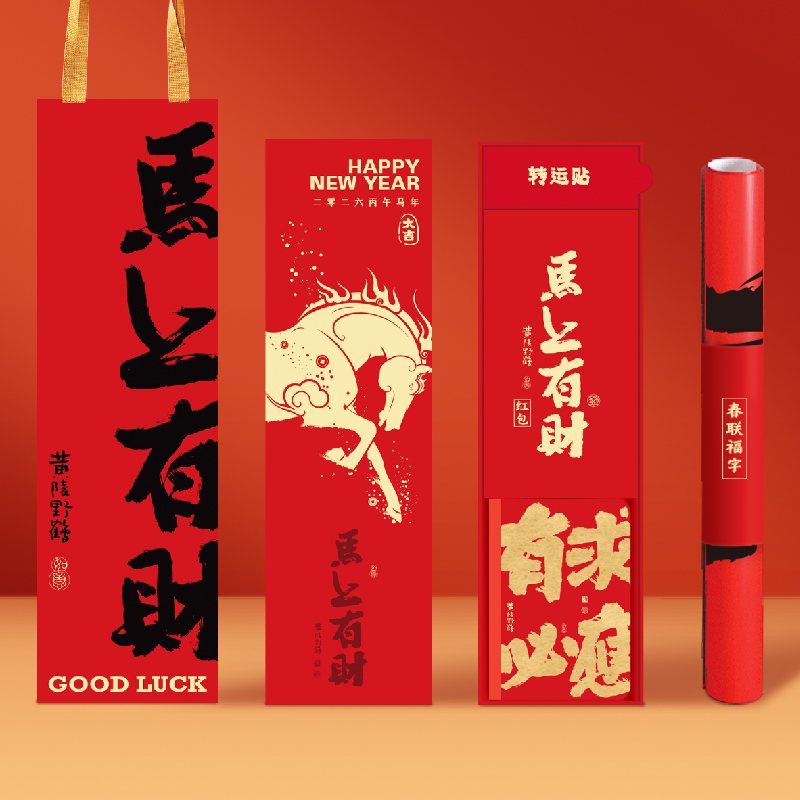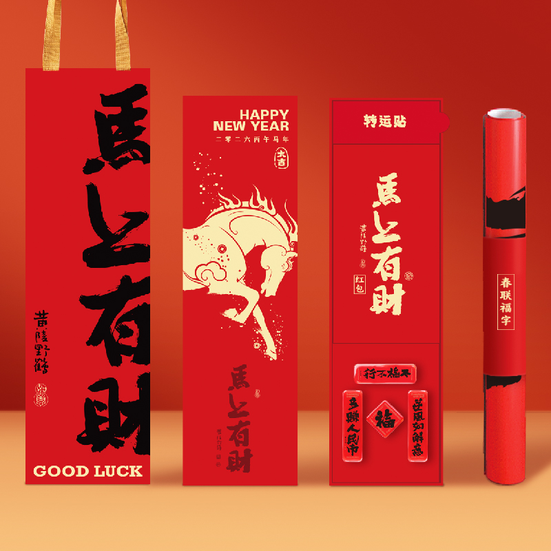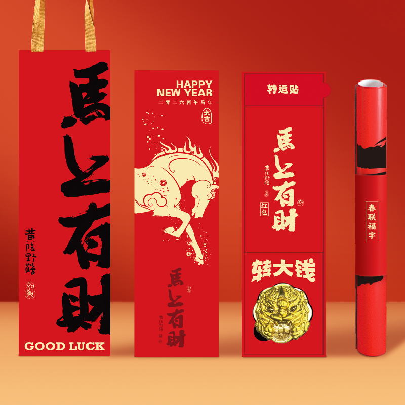 赞马新年礼盒马年春节春联文创冰箱贴手账本礼盒
