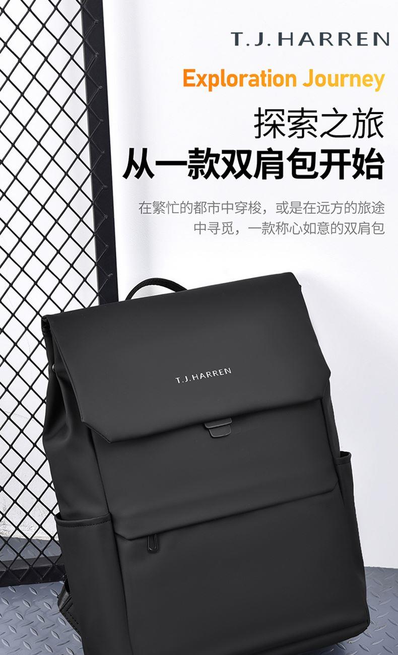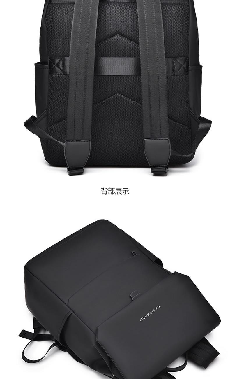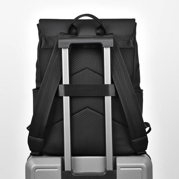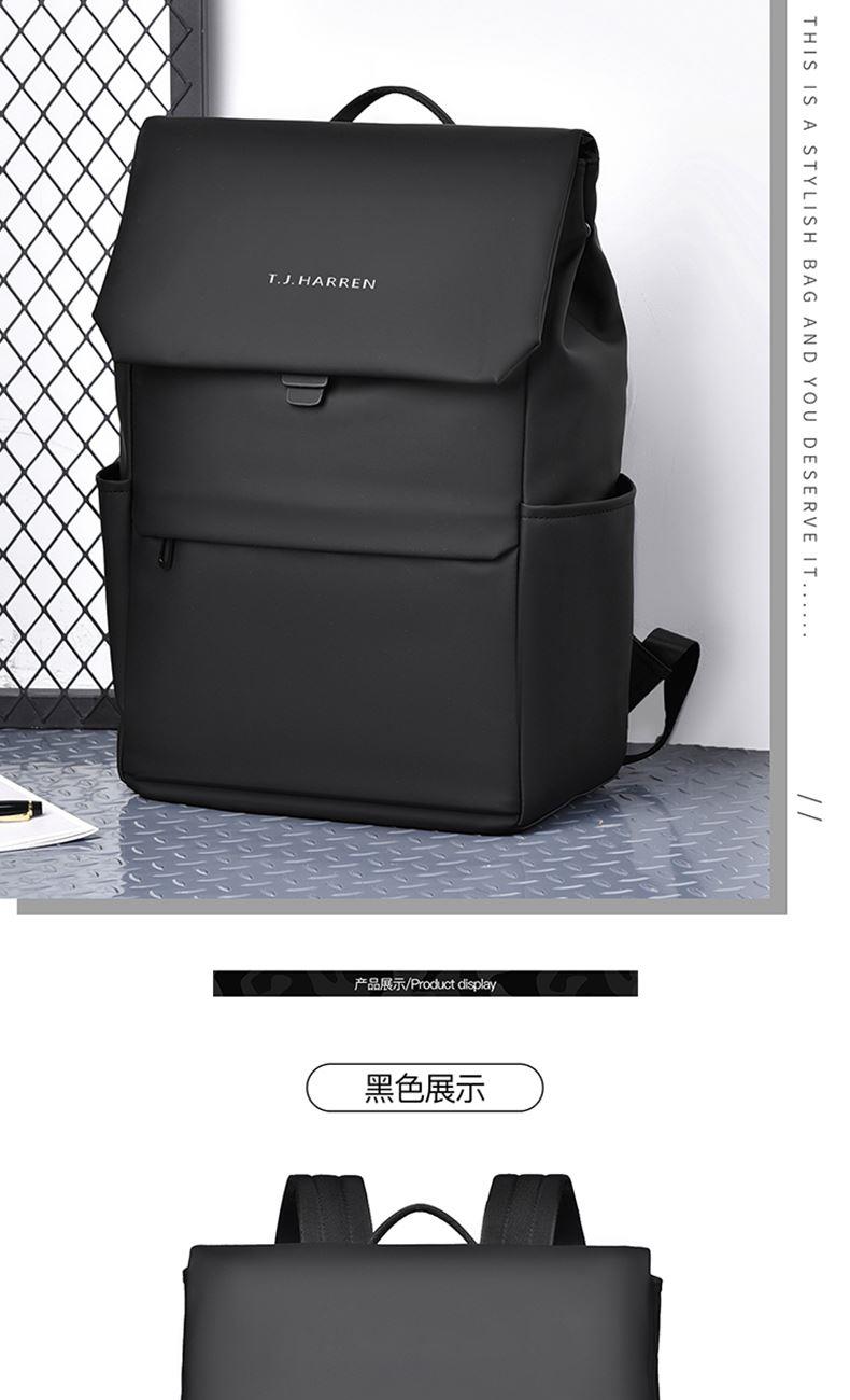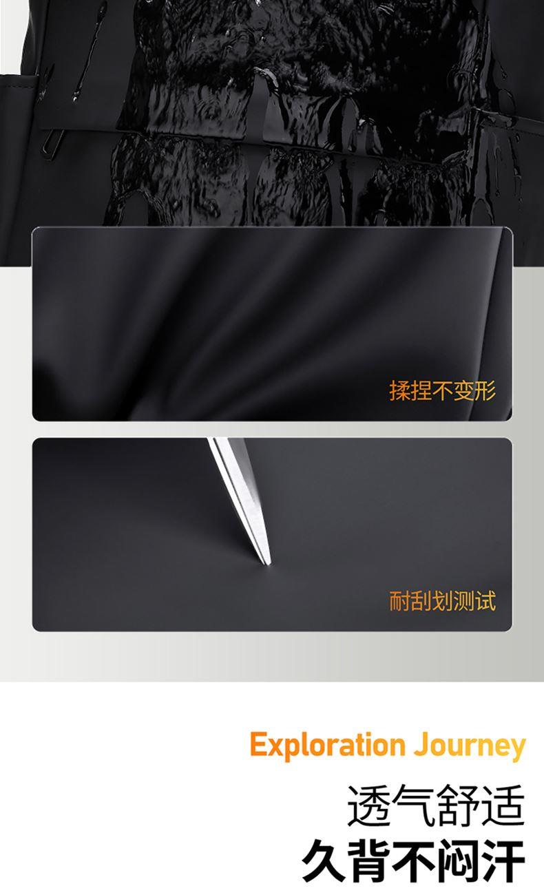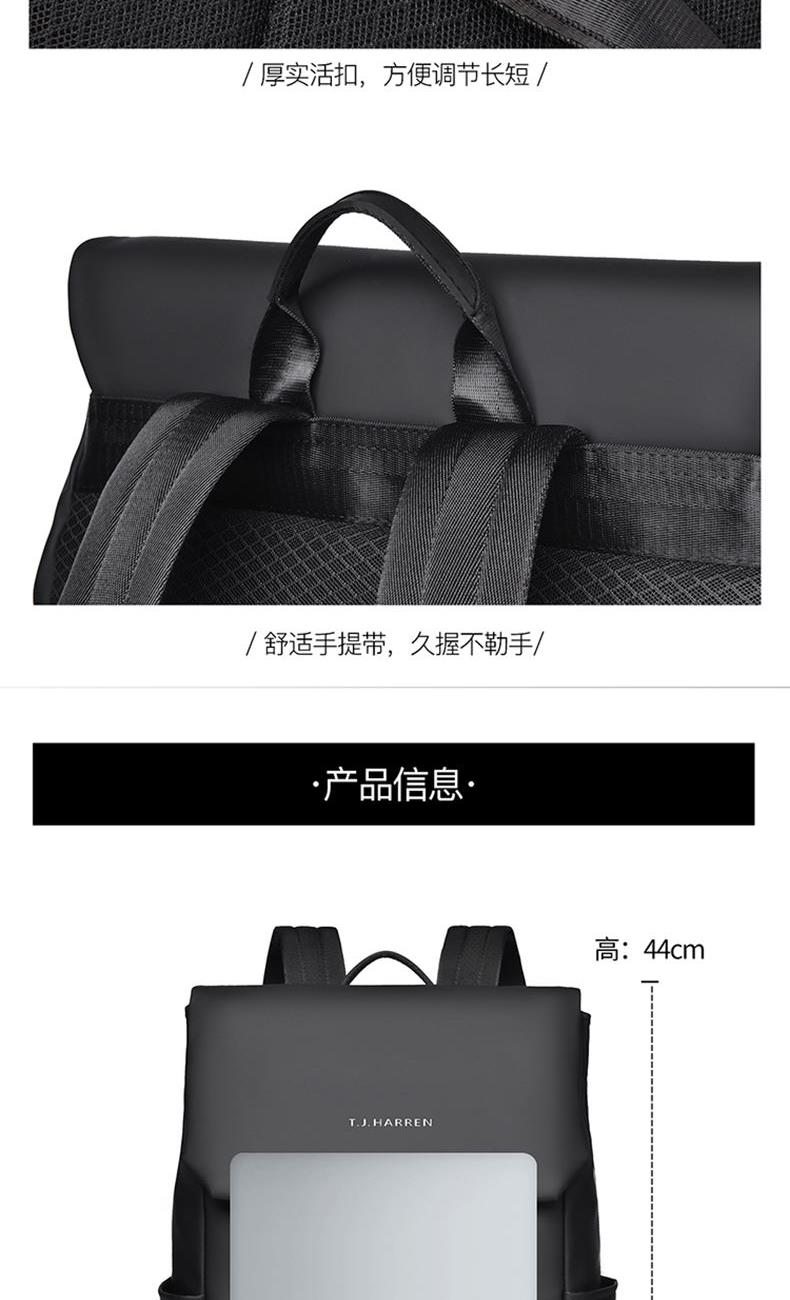 1、新款多功能设计,时尚大方,旅行休闲商务三用;2、柔性防水皮膜面料,一擦即干,轻松打理;3、多隔层结构,分区合理,轻松收纳;4、主袋约20L大容量,装的更多;5、独立加棉加厚电脑隔层袋,可放置15.6寸电脑;6、前置拉链袋、侧袋及内置袋,放置贴身物品;7、拉杆固定束带设计,解放双手;8、透气背负系统,配合加大加厚提手与肩带,可背可提、透气干爽,舒适减压出行;9、支持客户定制。