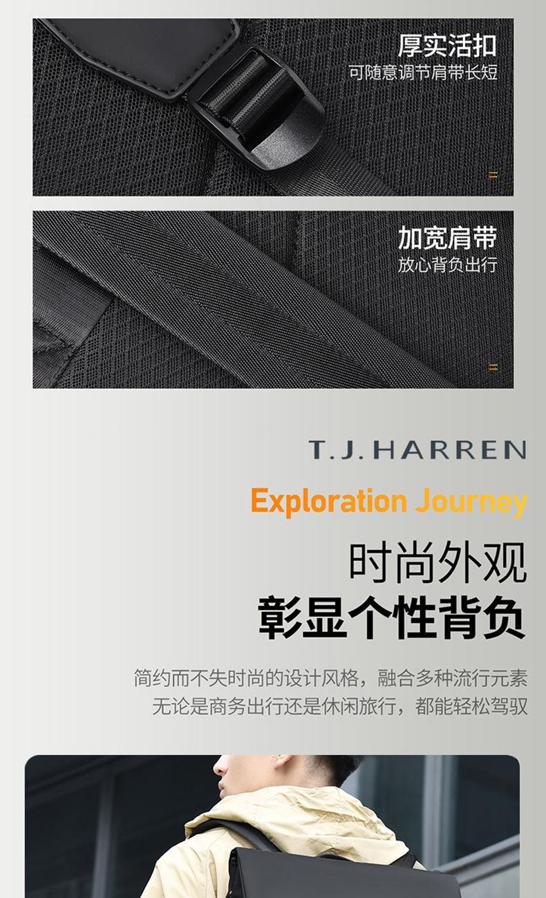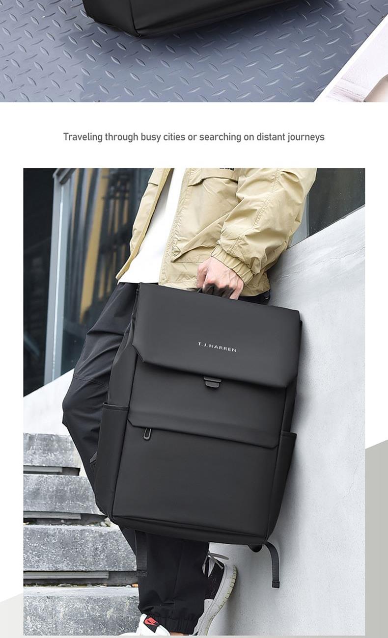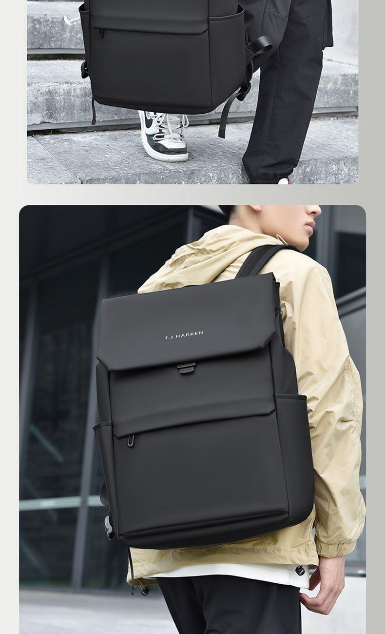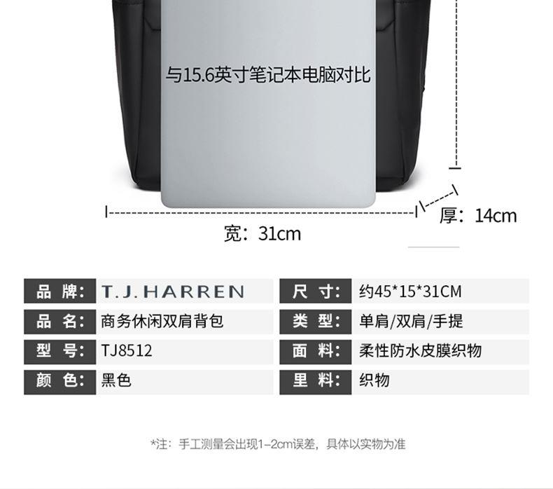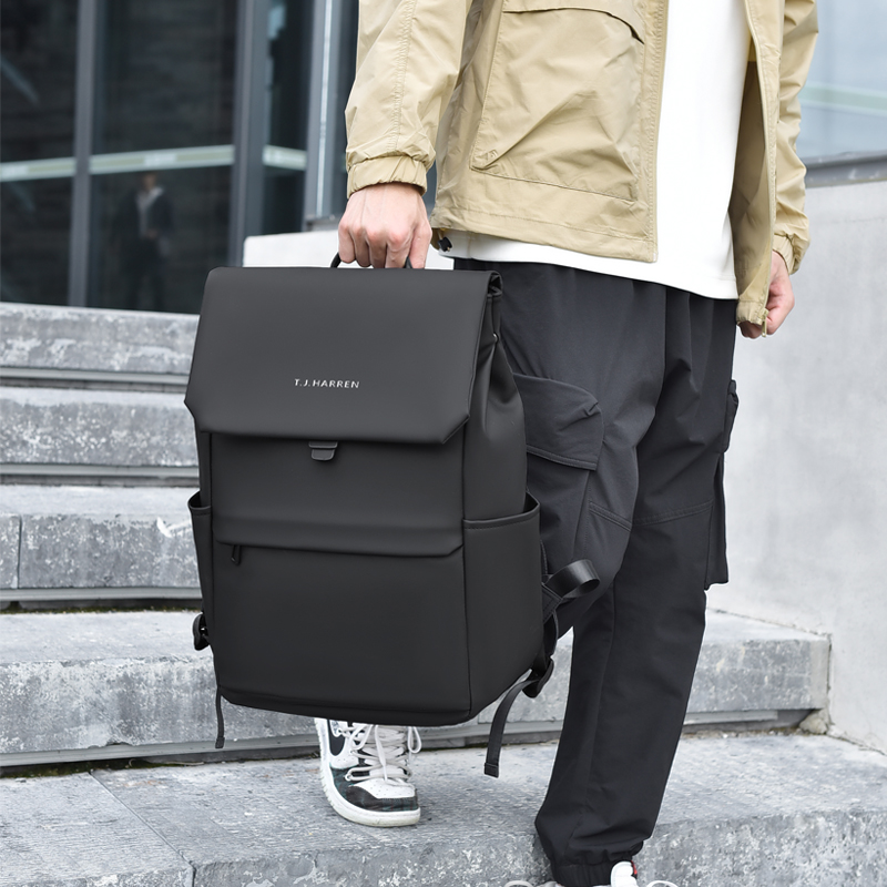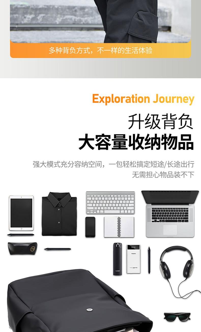 1、新款多功能设计,时尚大方,旅行休闲商务三用;2、柔性防水皮膜面料,一擦即干,轻松打理;3、多隔层结构,分区合理,轻松收纳;4、主袋约20L大容量,装的更多;5、独立加棉加厚电脑隔层袋,可放置15.6寸电脑;6、前置拉链袋、侧袋及内置袋,放置贴身物品;7、拉杆固定束带设计,解放双手;8、透气背负系统,配合加大加厚提手与肩带,可背可提、透气干爽,舒适减压出行;9、支持客户定制。