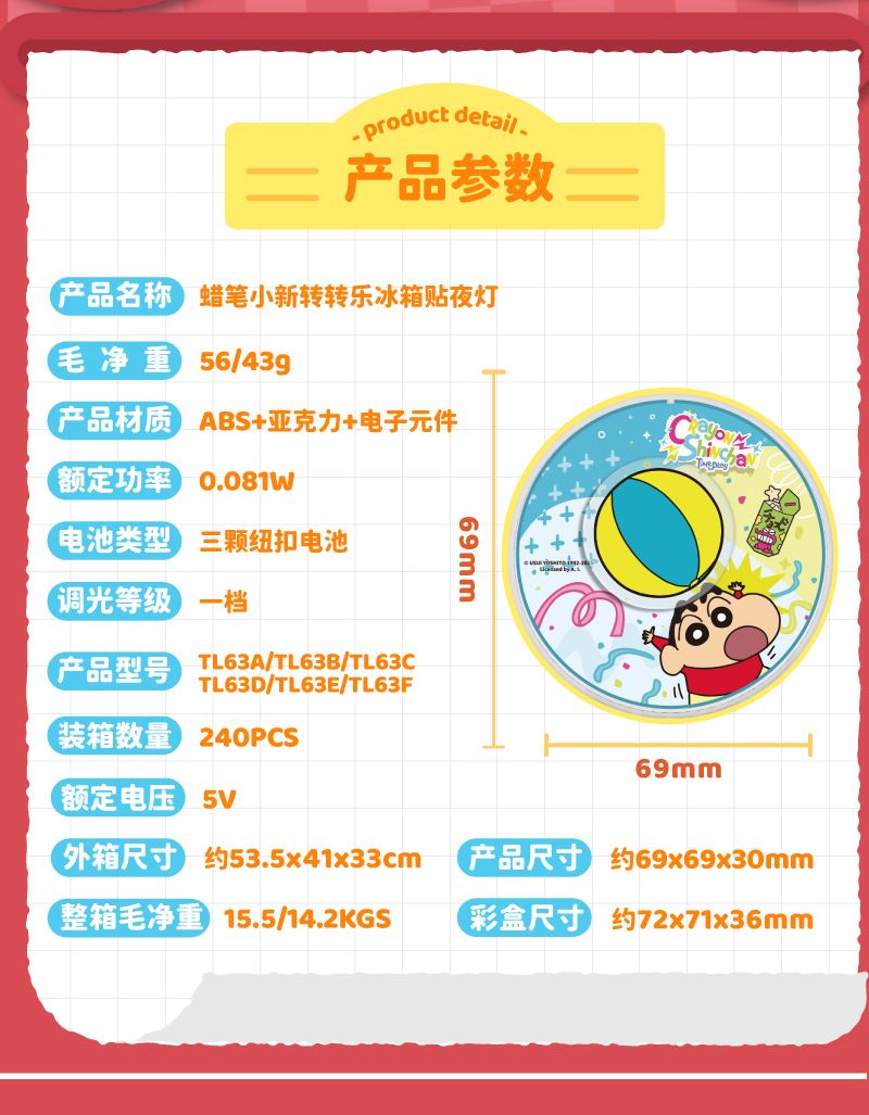 淘艺轩蜡笔小新转转乐冰箱贴夜灯TL63