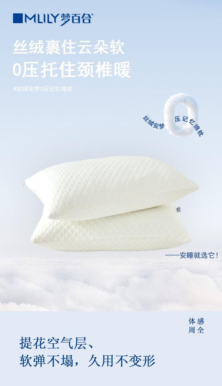 梦百合Mlily丝绒安梦0压记忆绵枕-单只记忆棉颗粒枕