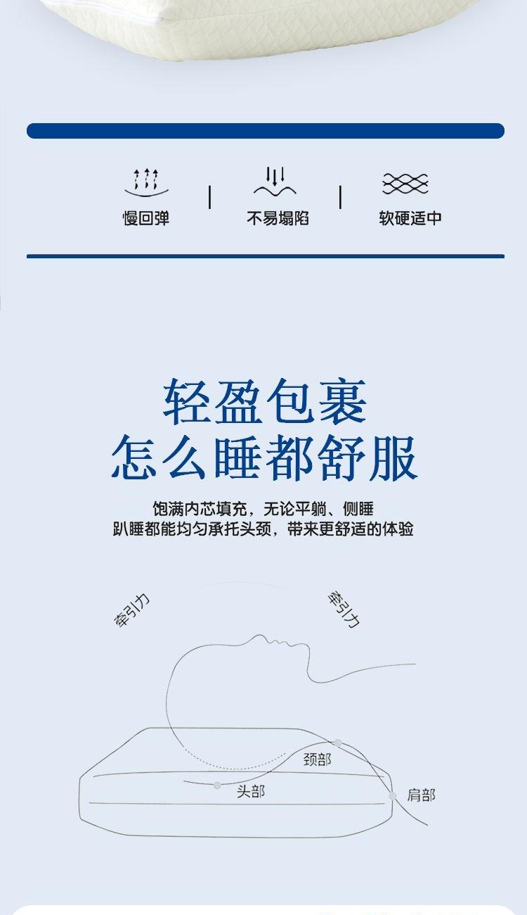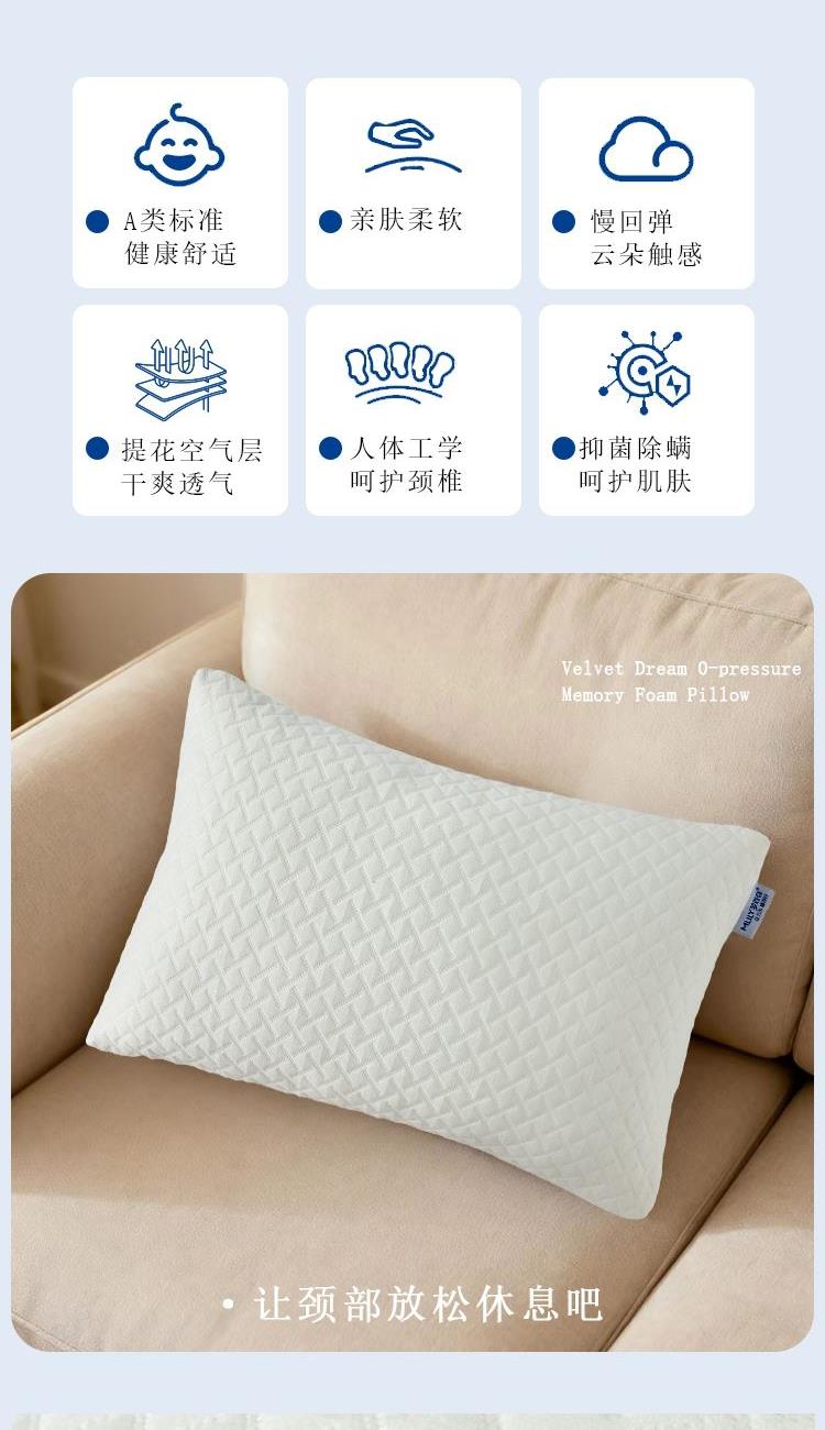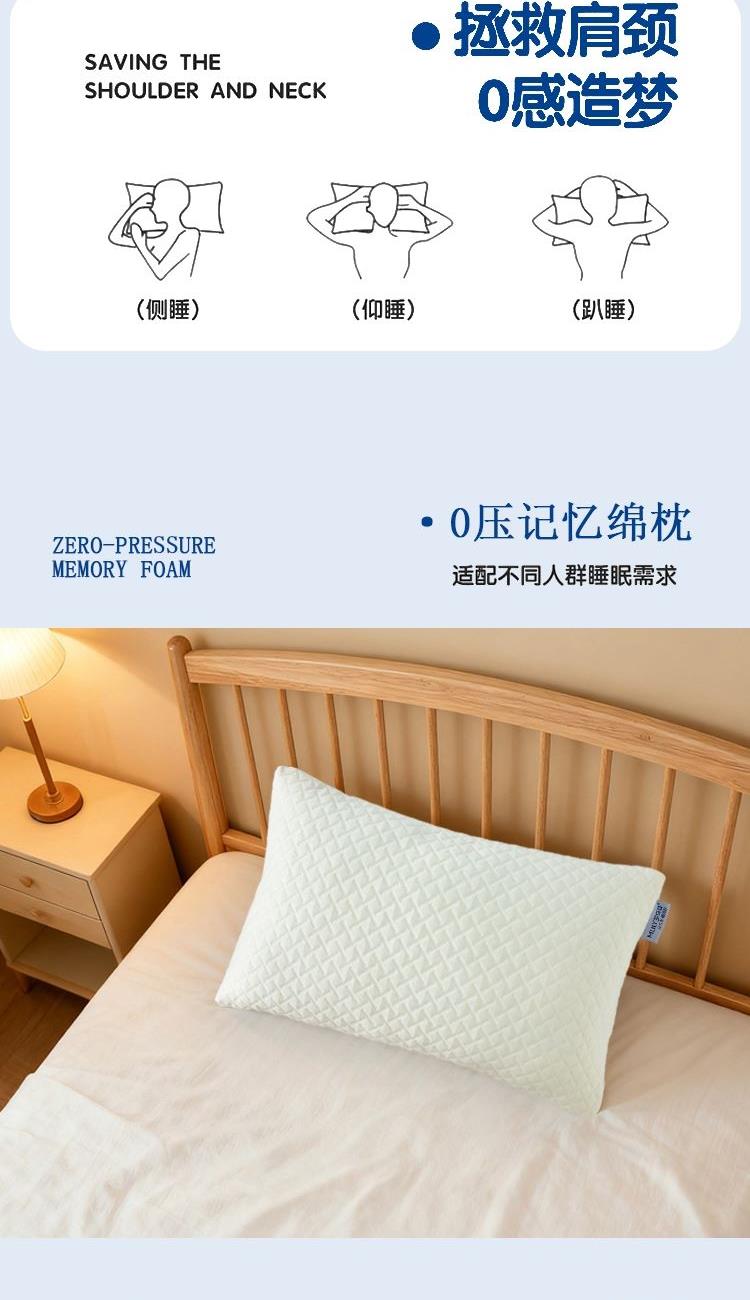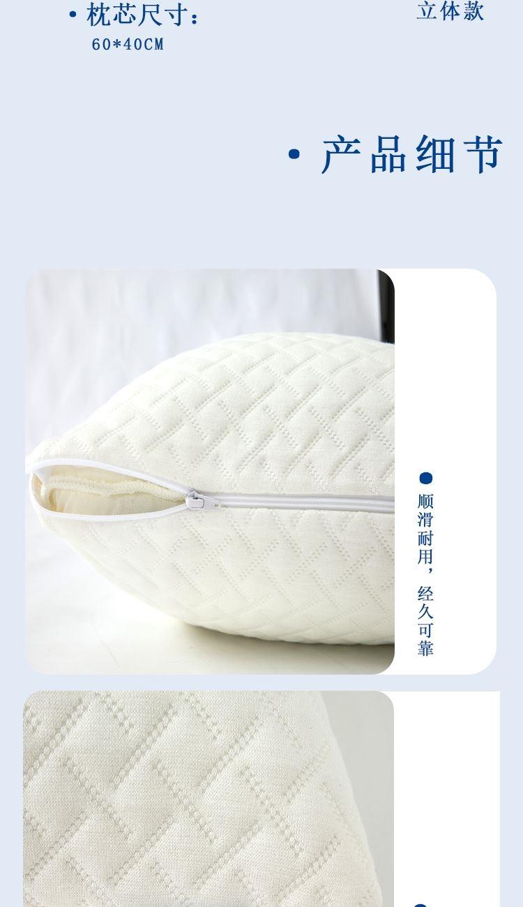 规格:60*40cm 面料:提花空气层 填充:记忆绵颗粒 数量:10只/箱 卖点:记忆棉枕芯全球TOP1 1、贴合头颈肩的曲线设计,连个不同的力学结构科学支撑设计,让你翻身更随意 2、均匀吸收冲击力,缓慢变形,使压力在整个接触面分散,释放压力 3、优选健康内套,给健康多一层的保障