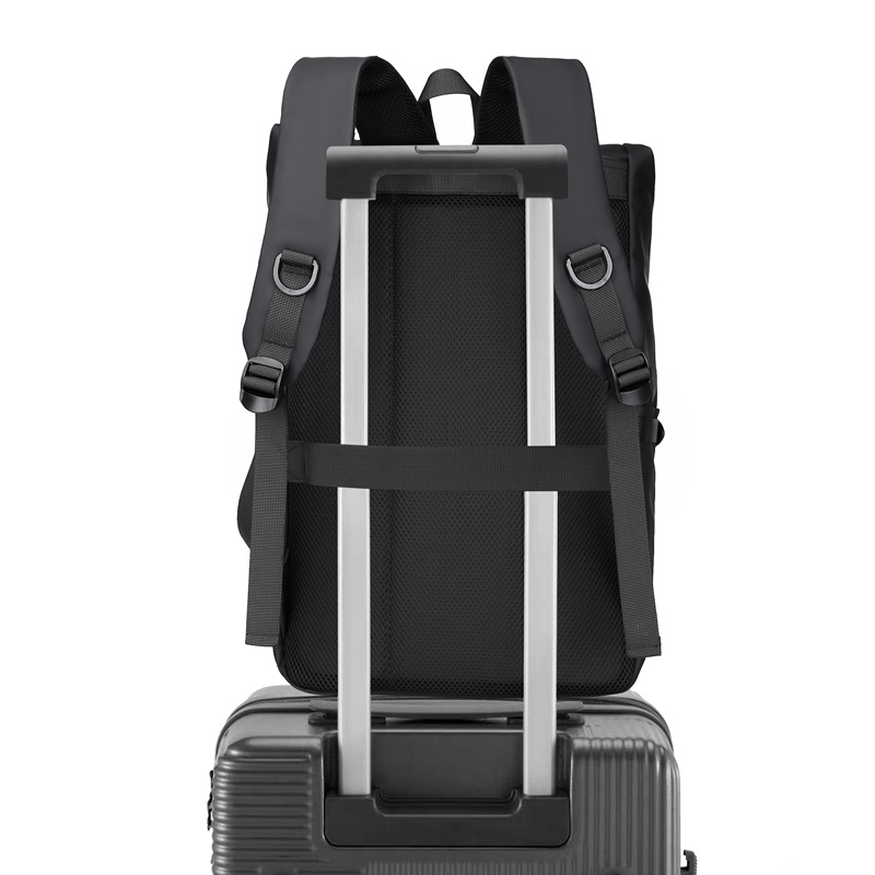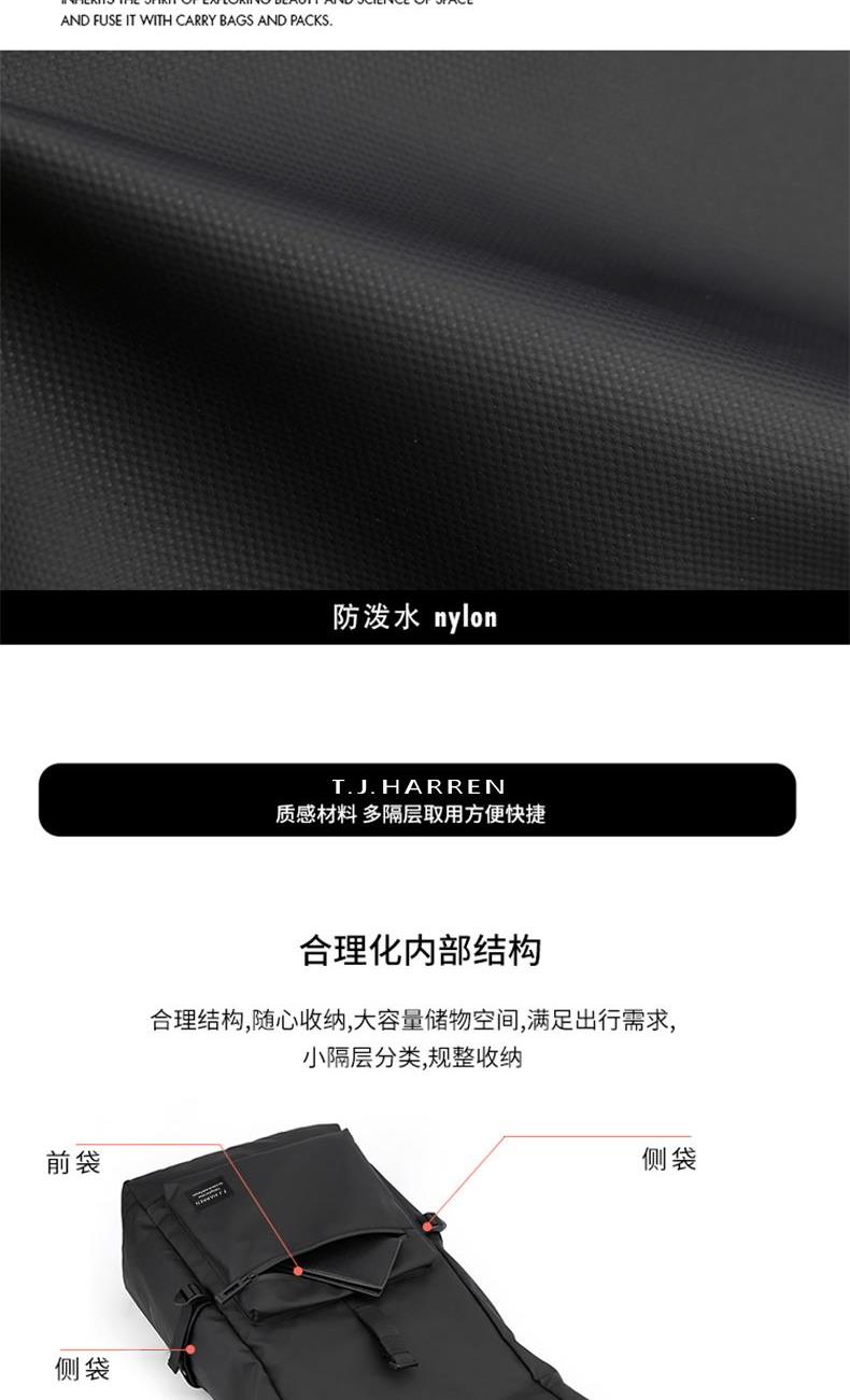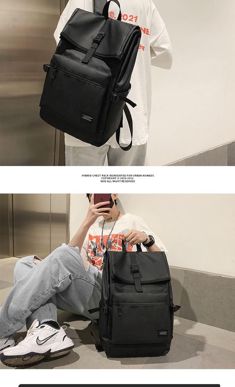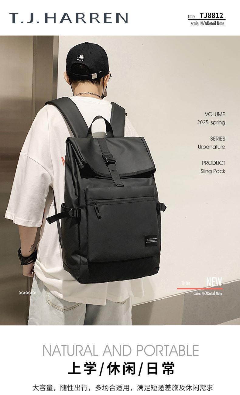 1、新款多功能设计,时尚大方,旅行休闲商务三用;2、柔性防水皮膜面料,一擦即干,轻松打理;3、多隔层结构,分区合理,轻松收纳;4、主袋约17L大容量,同时收口处可灵活扩展容量,装的更多;5、独立加棉加厚电脑隔层袋,可放置15.6寸电脑;6、前置拉链袋、侧袋及内置袋,放置贴身物品;7、拉杆固定束带设计,解放双手;8、透气背负系统,配合加大加厚提手与肩带,可背可提、透气干爽,舒适减压出行;9、支持客户定制