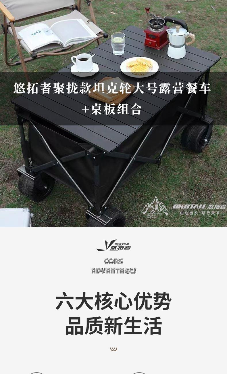 悠拓者聚拢款坦克轮大号露营餐车+桌板组合YT-LY27T
